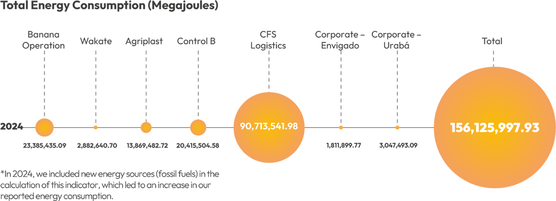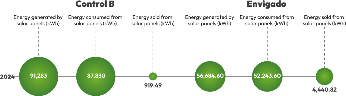 in 2024, we generated 147,967.6 kWh of solar energy through photovoltaic panels installed at our administrative offices in Envigado and Control B.